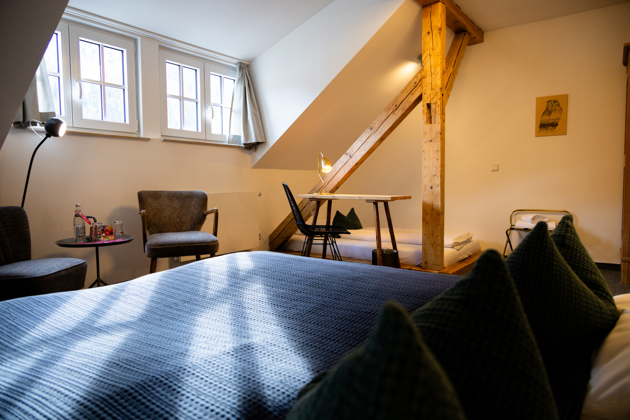 Die Alpenrose bietet aktuell 31 Zimmer in verschiedenen Kategorien: Einzelzimmer, Standard- und Superior-Doppelzimmer, Mehrbett- und Familienzimmer sowie das großzügige Wendelsteinzimmer mit 30 m² und Bergblick. Die Zimmer sind hell, freundlich eingerichtet und solide ausgestattet – kein Designhotel, aber auch kein Standardzimmer von der Stange. Preislich geht es ab etwa 159 € pro Nacht für zwei Personen los.